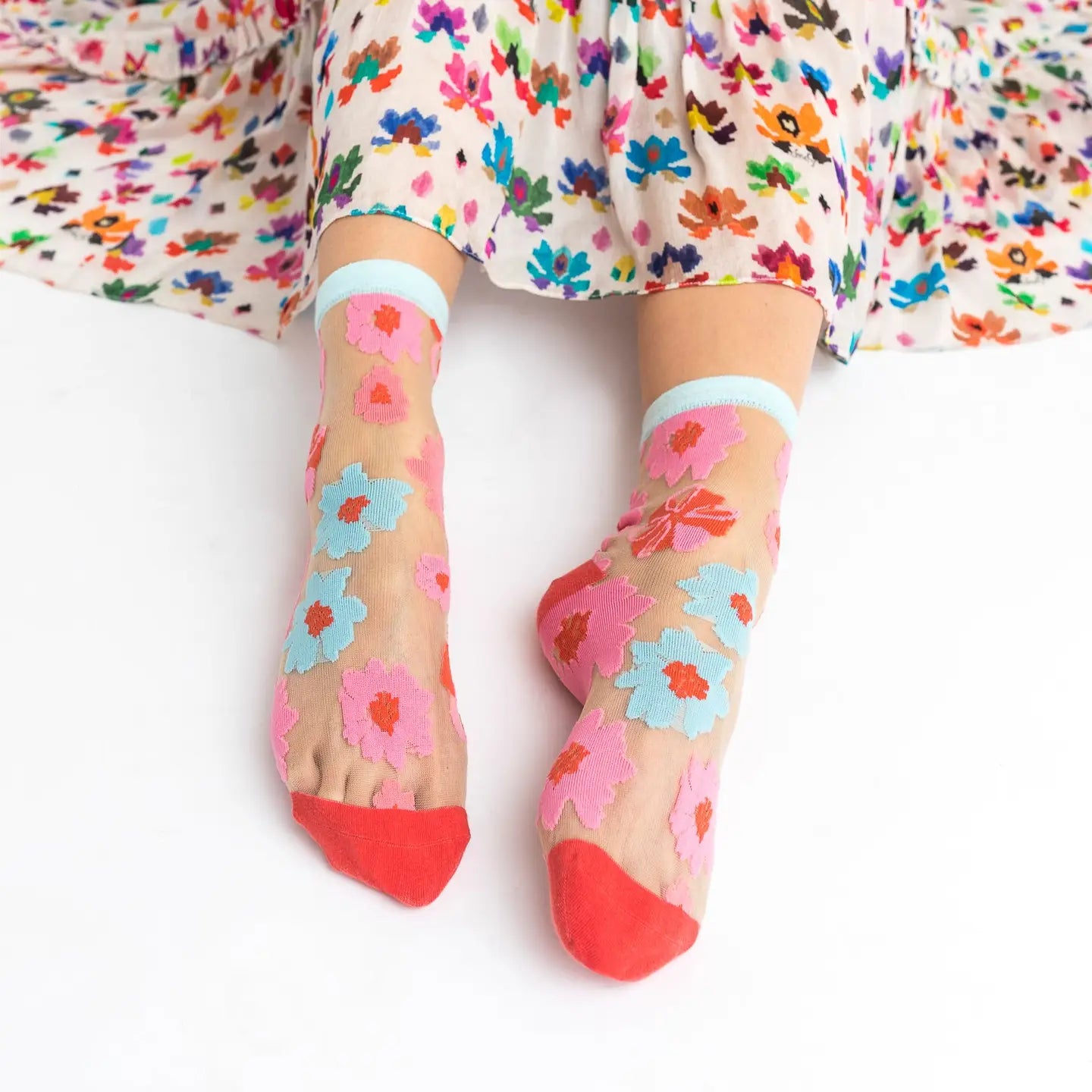 Sock Candy Stain Glass Floral Sheer Crew Sock