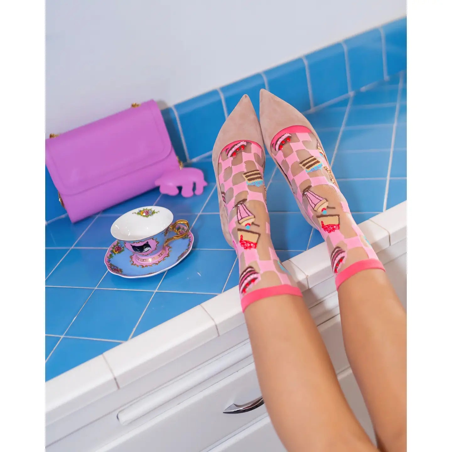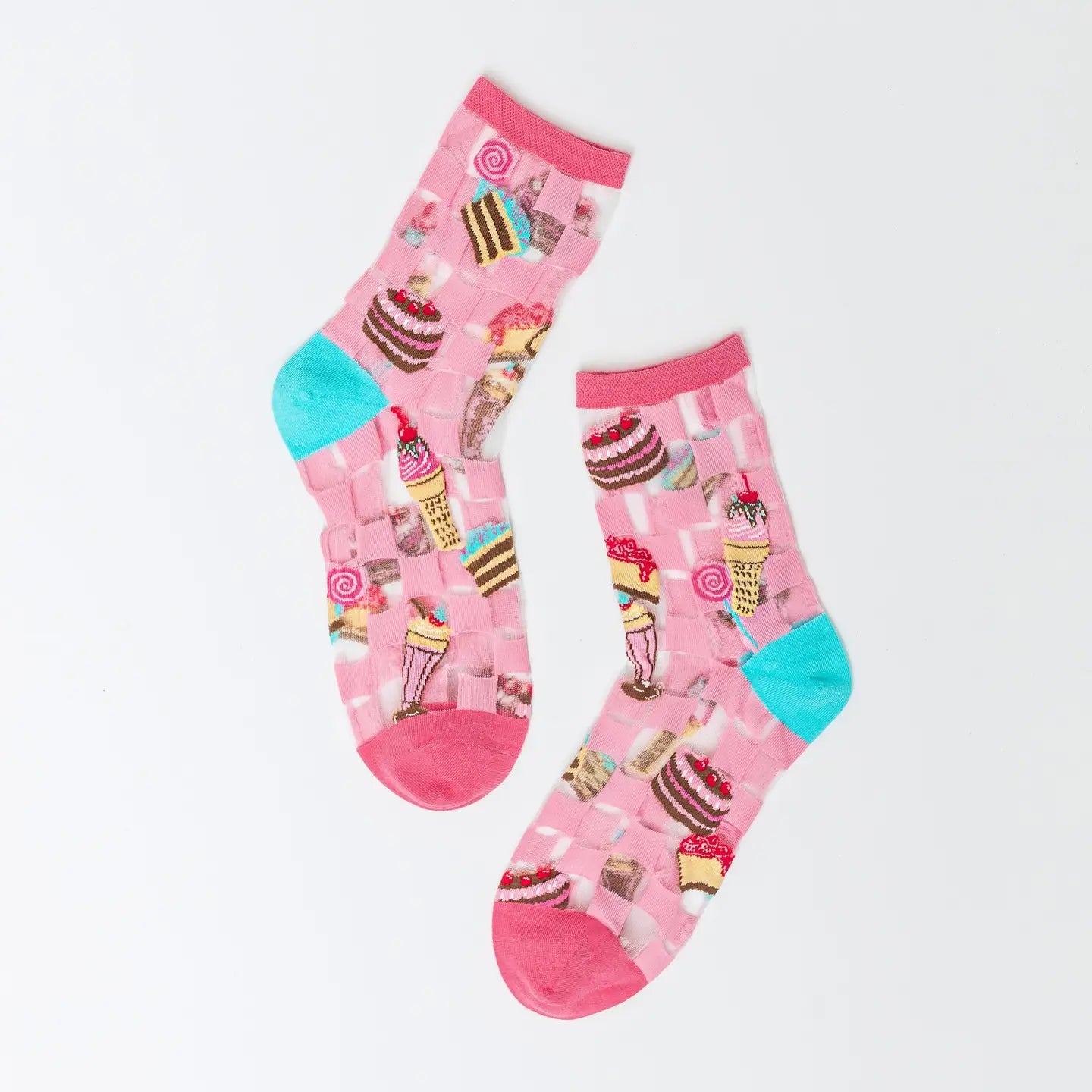 Sock Candy Strawberry Daisy Ruffle Sheer Crew Sock