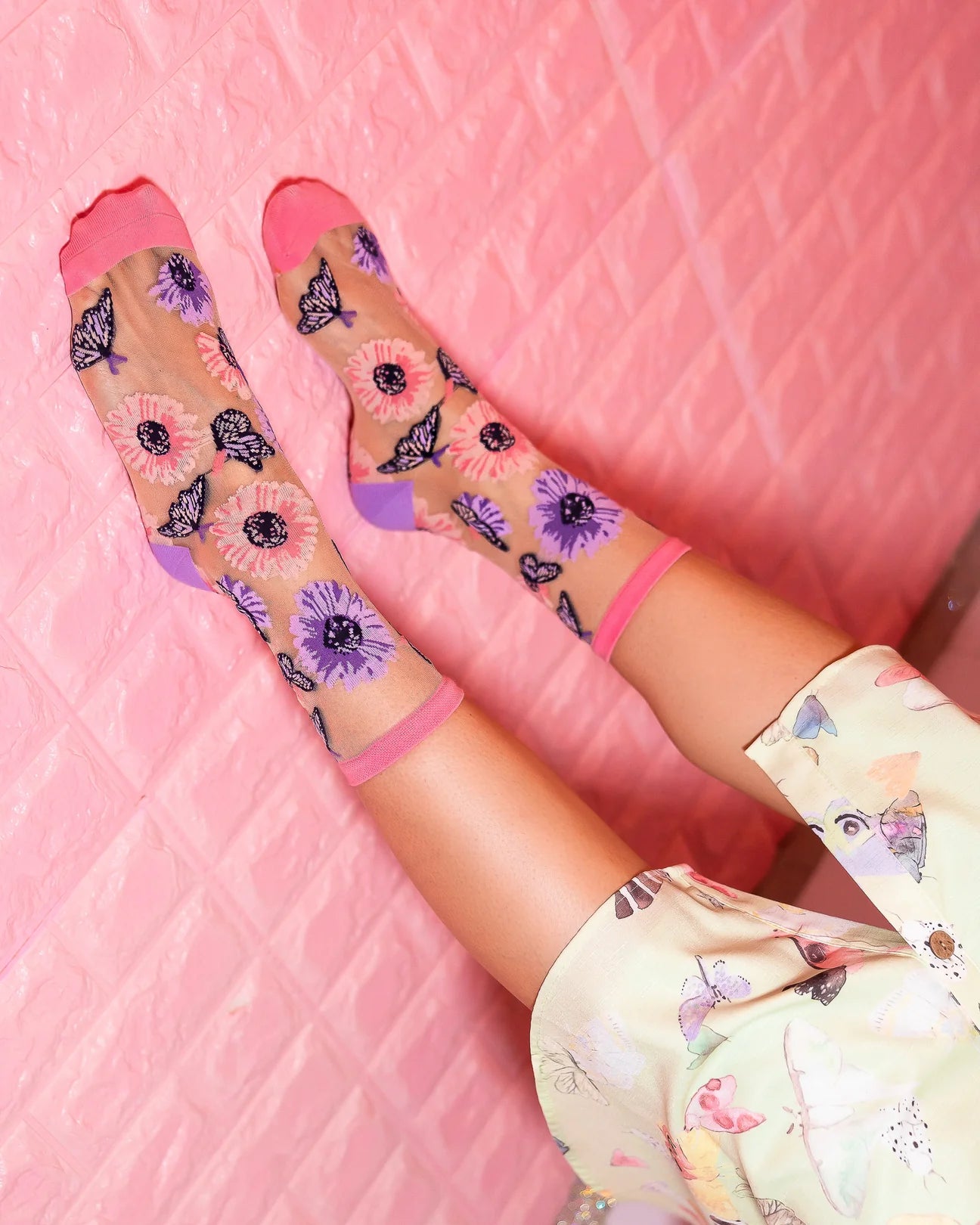 Sock Candy Sunflower Butterfly Sheer Crew Sock