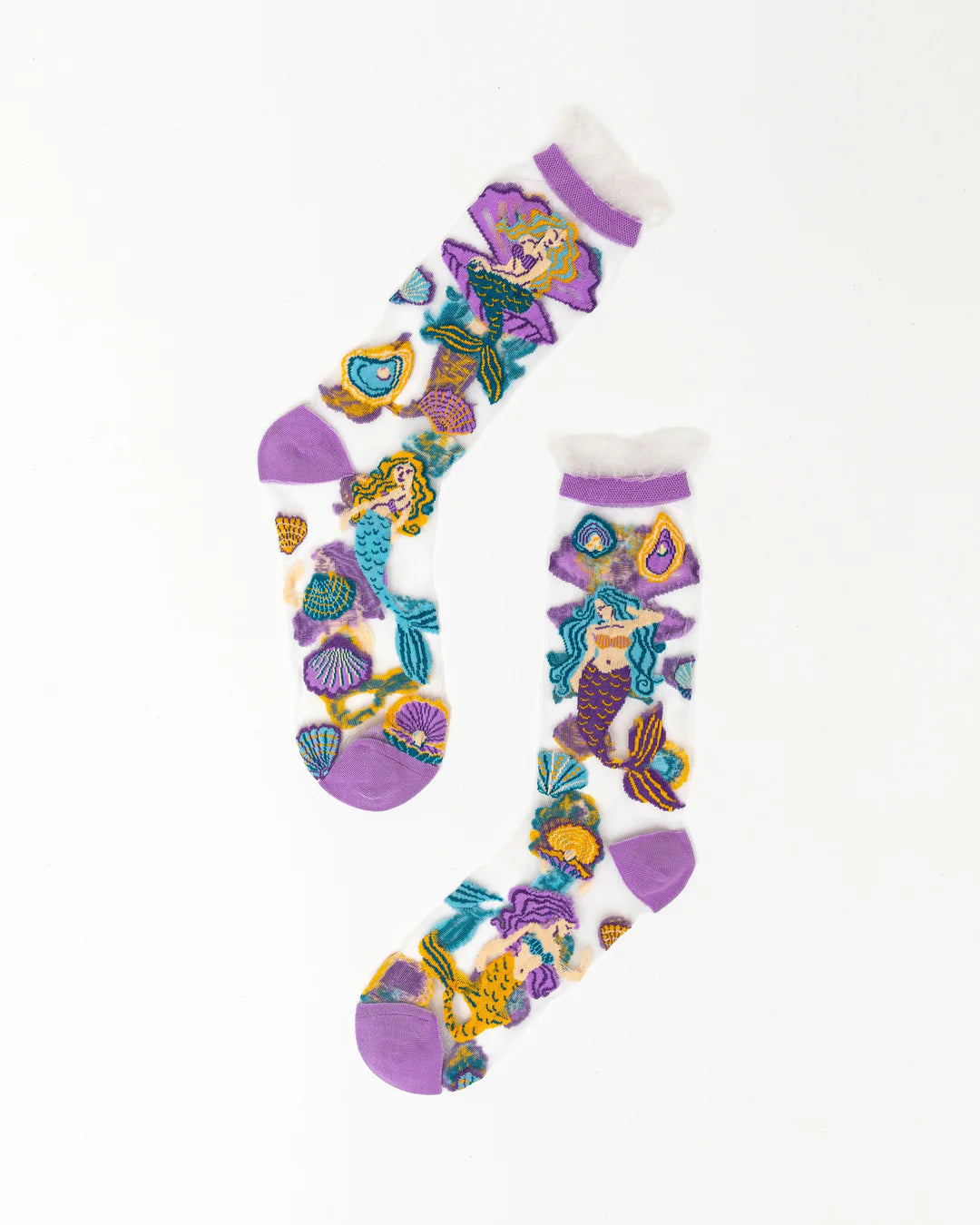 Sock Candy Whimsical Mermaid Ruffle Sheer Crew Sock