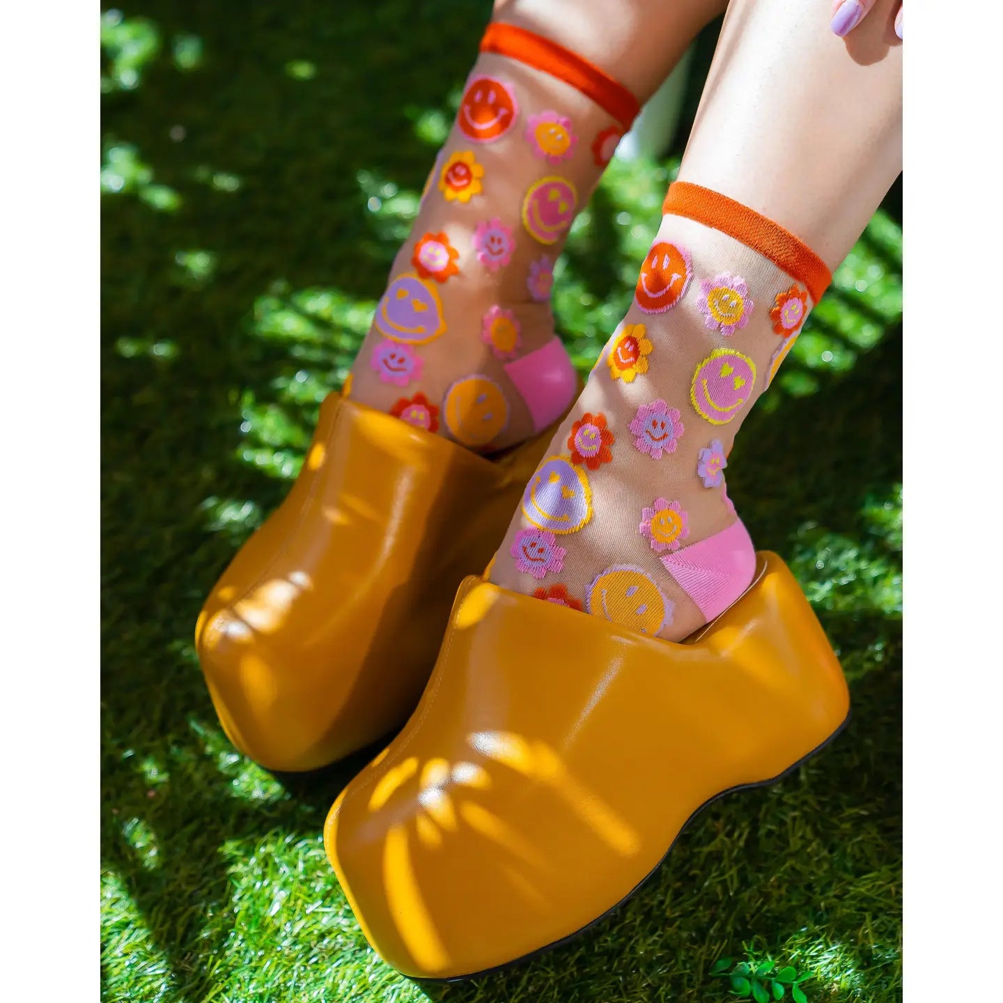 Sock Candy Smiley Face Daisy Sheer Crew Sock
