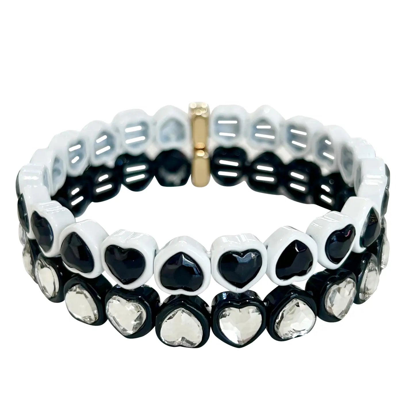 Gemelli Valentine Black Mix Heart Beaded Bracelet Set