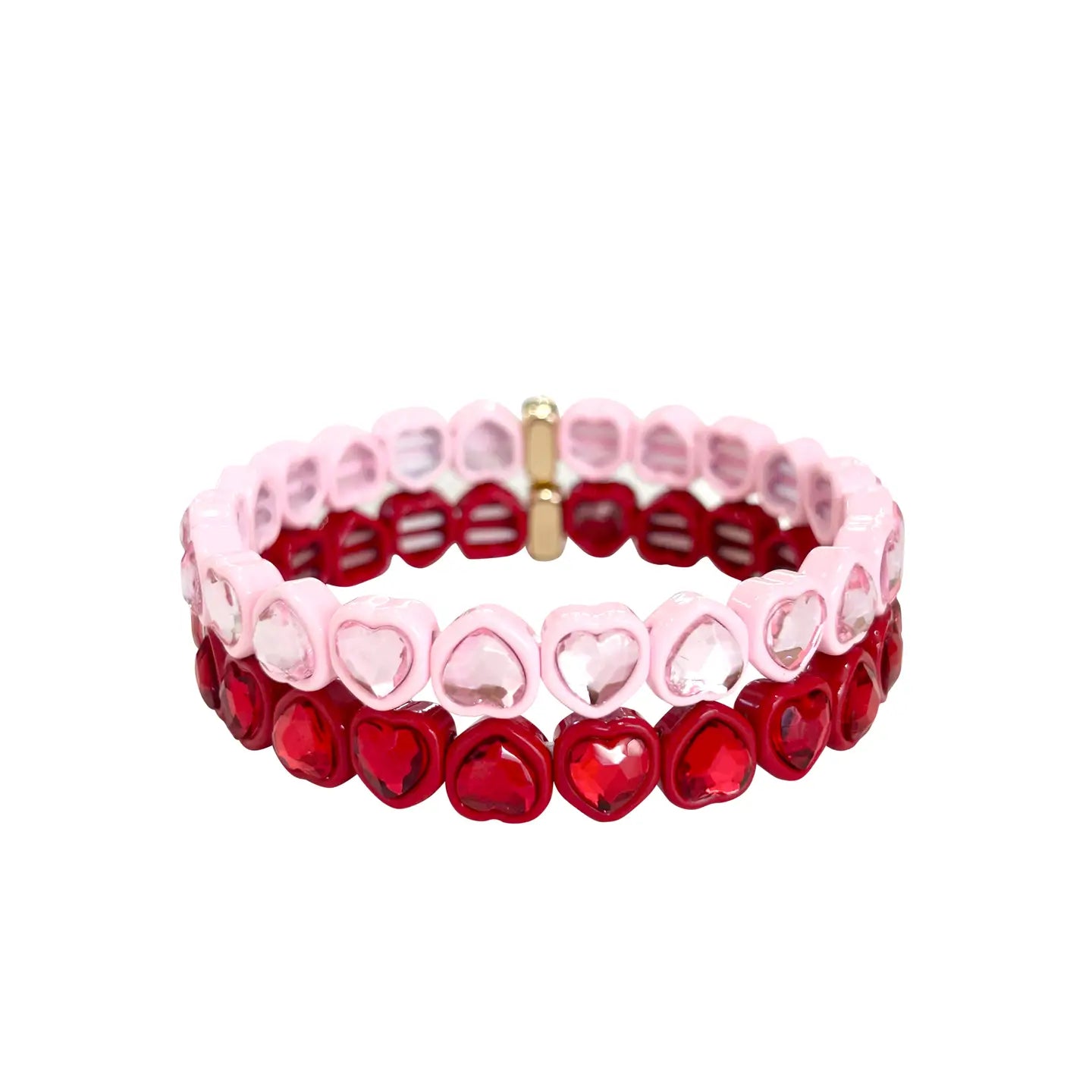 Gemelli Valentine Pink Rainbow Mix Heart Beaded Bracelet Set