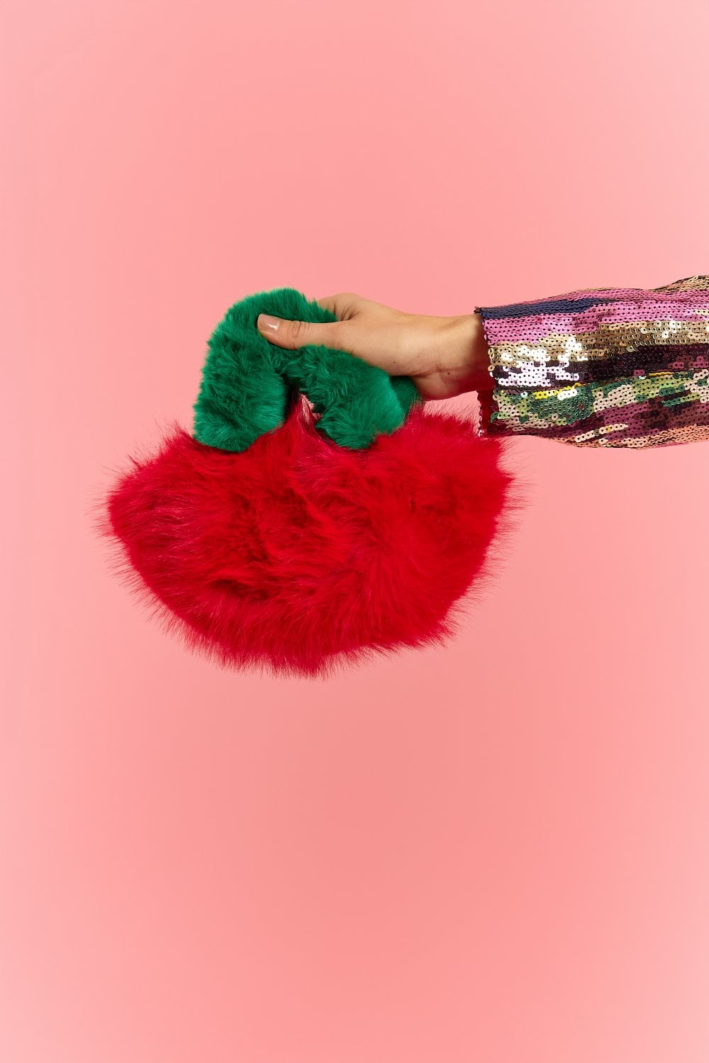 Jayley Red and Green Bamboo Faux Fur Bag