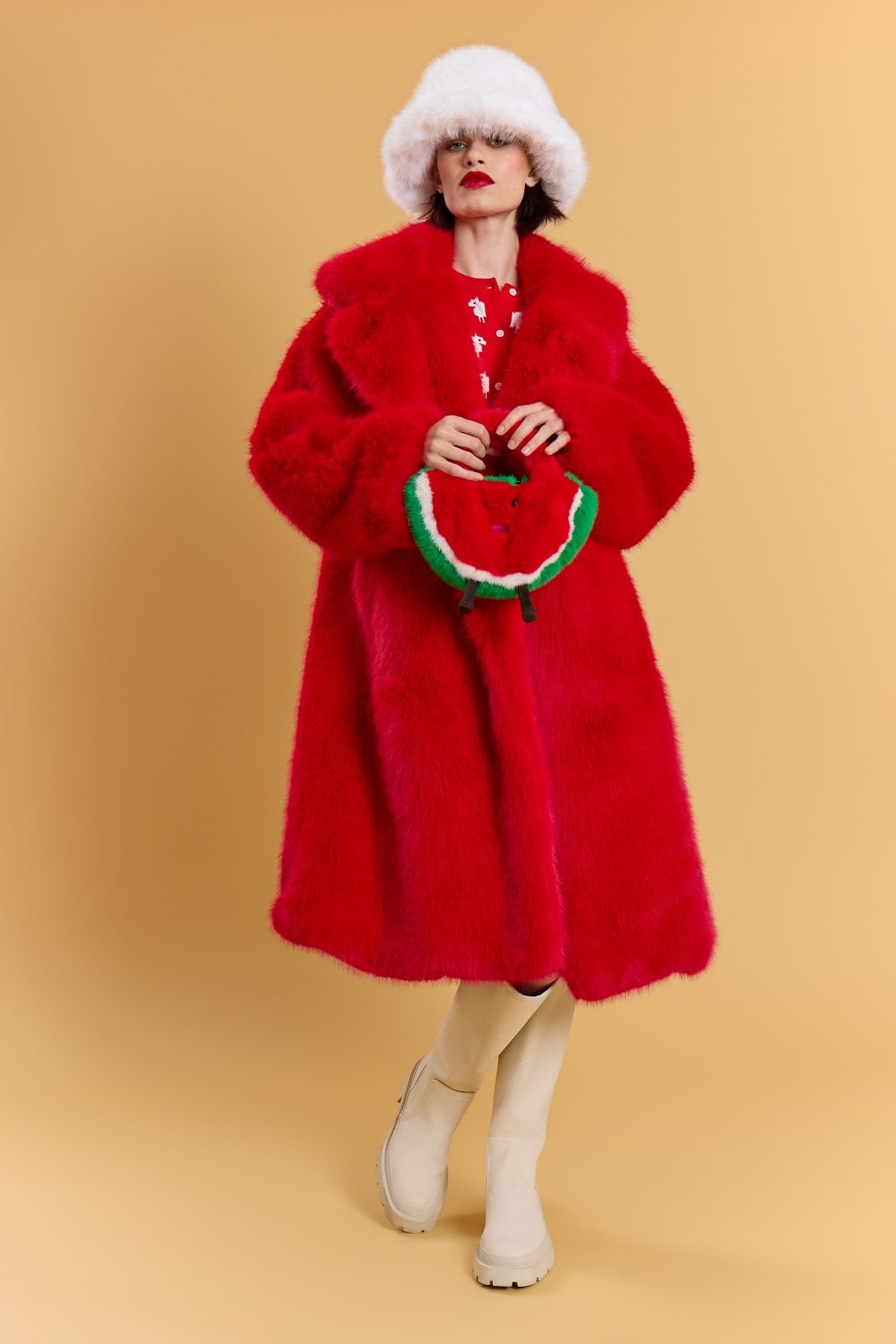 Jayley Red and Green Handmade Watermelon Bamboo Fur Bag