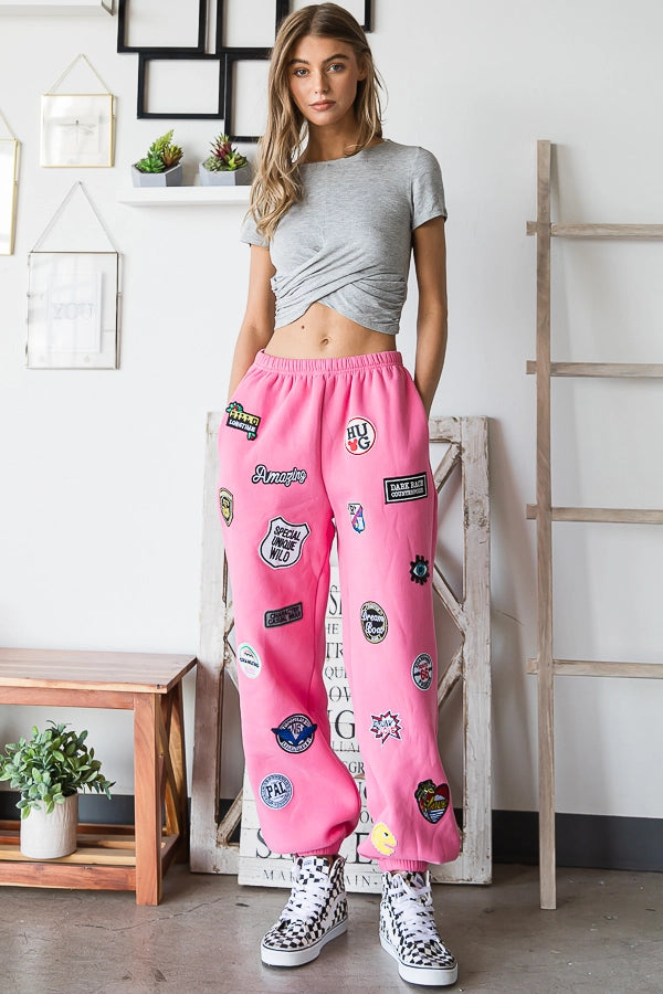 Oli & Hali Smocked Waistband Pants with Peace and Star Patches