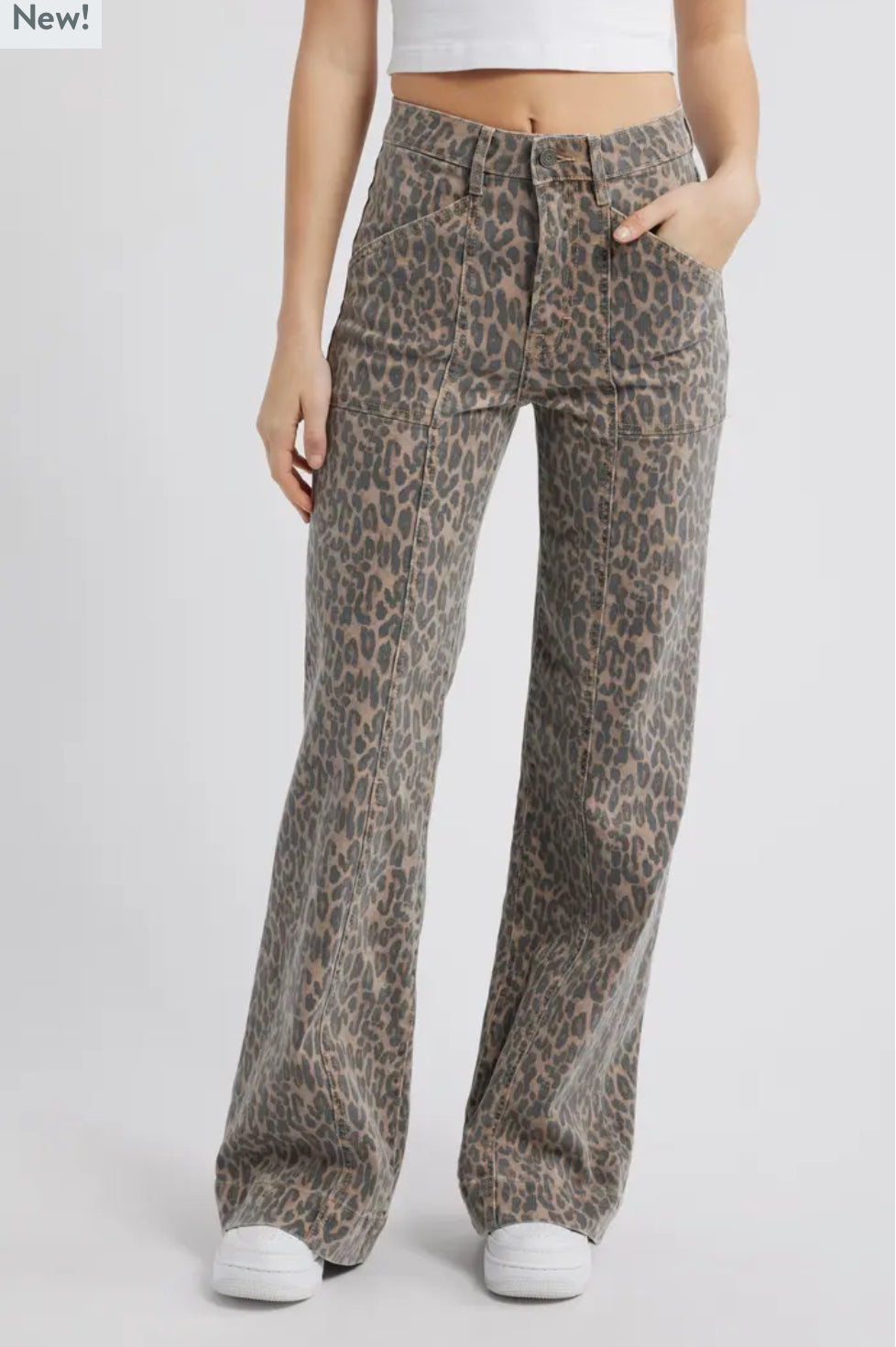 Hidden Denim Dylan Cheetah Baggy Denim Overalls