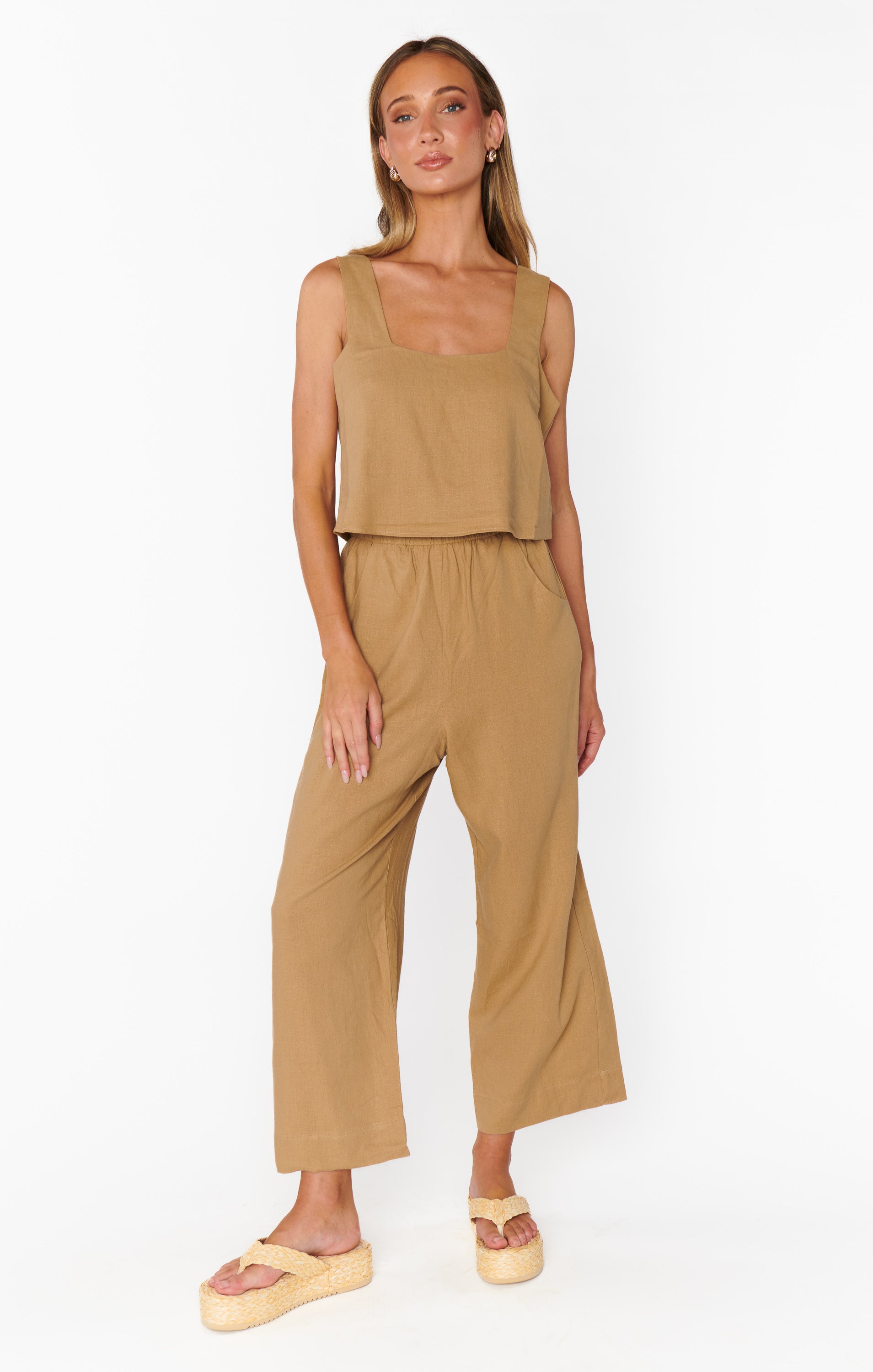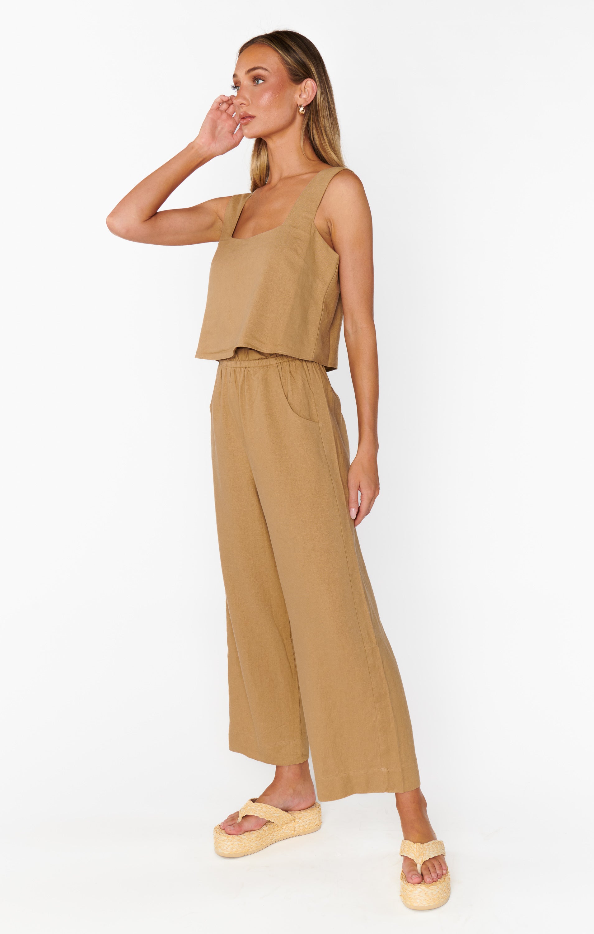 Milio Milano Linen Button Down Wide Leg Pant Mocha