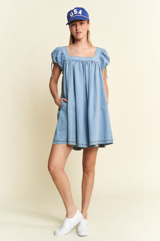 Jade by Jane Solid Denim Bubble Sleeve Dress