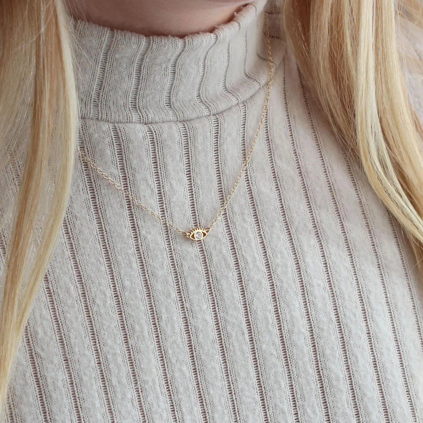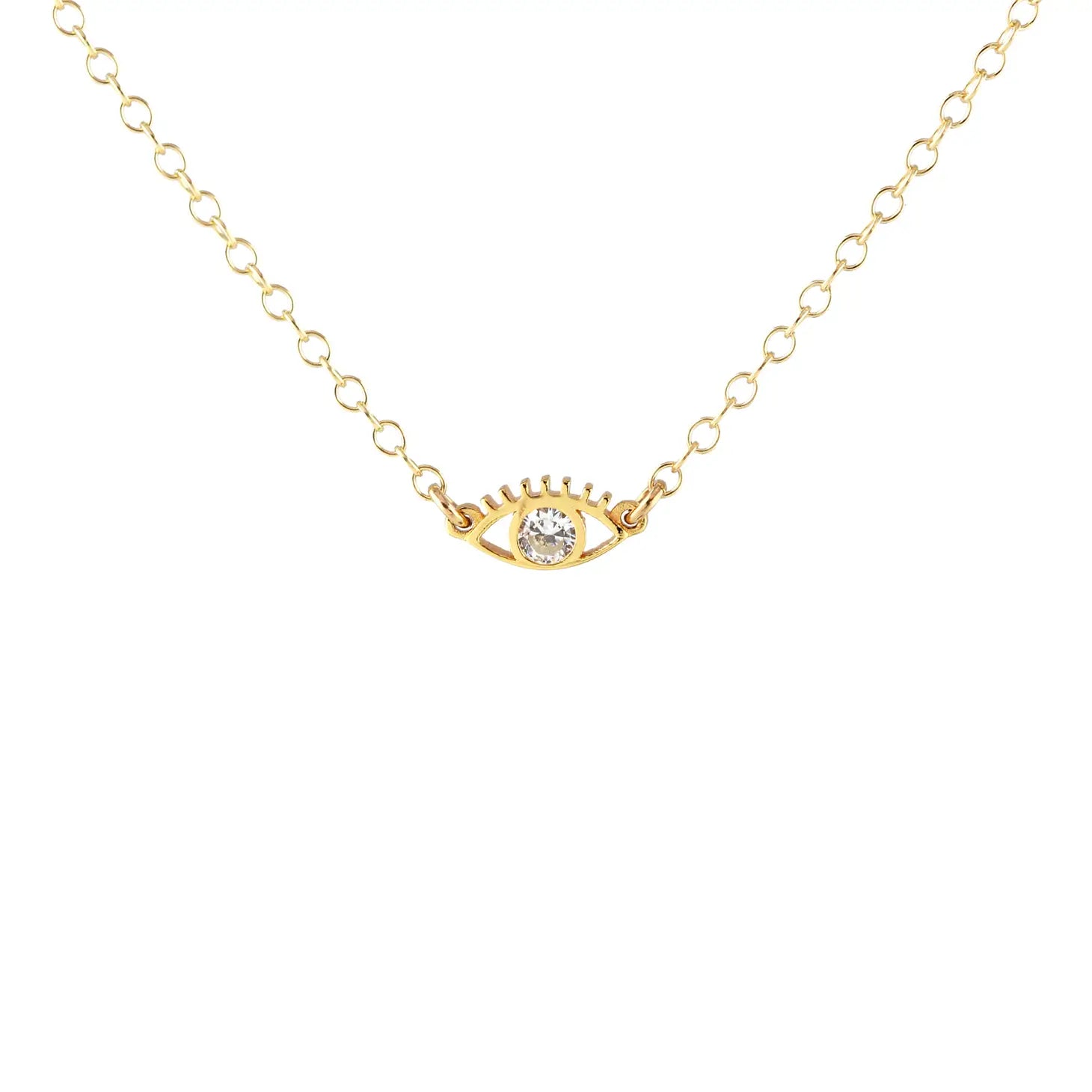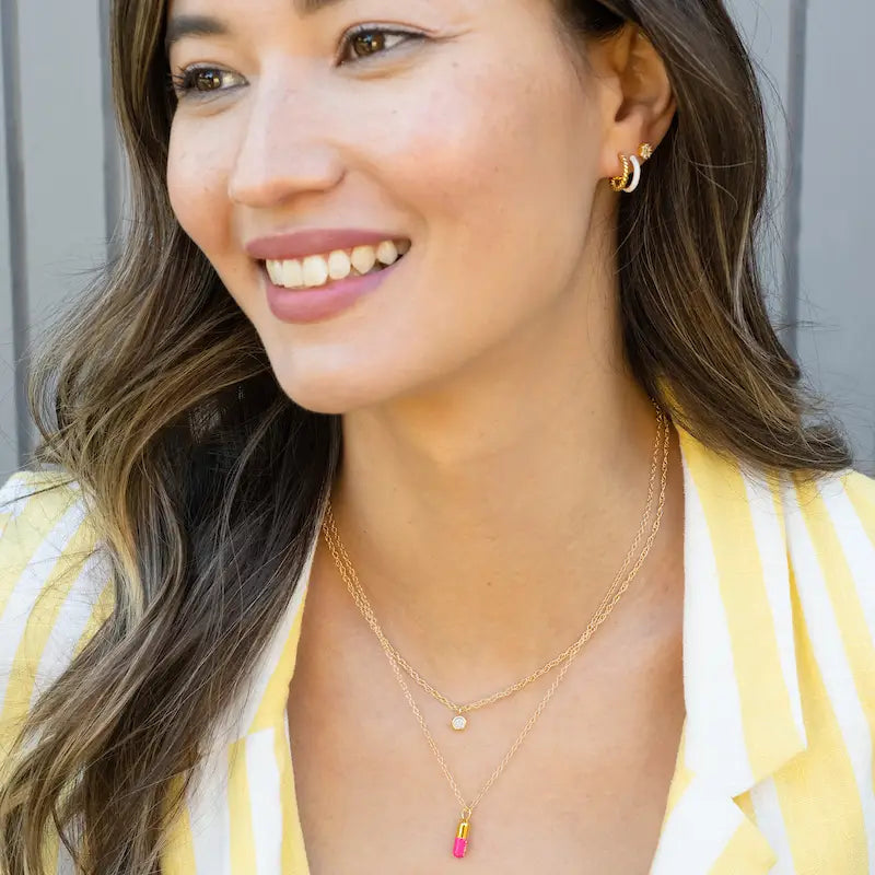 Kris Nations Petite Crystal Bezel Necklace 18K Gold Vermeil