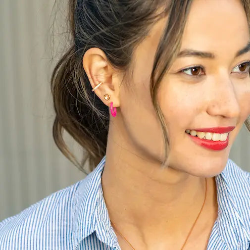 Kris Nations Heart Enamel Huggie Hoop Earrings