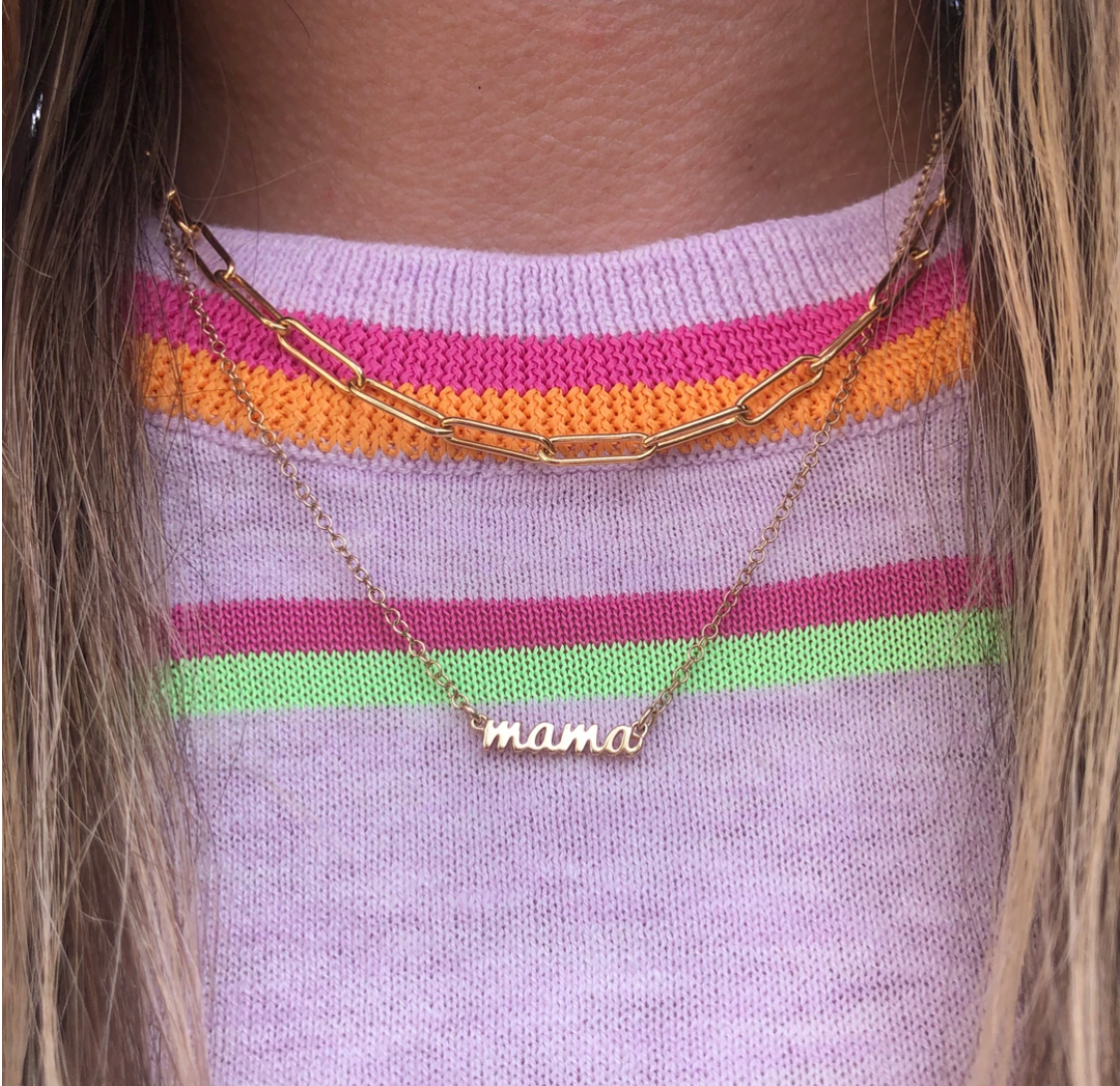 Kris Nations Mama Script Charm Necklace Gold/Silver