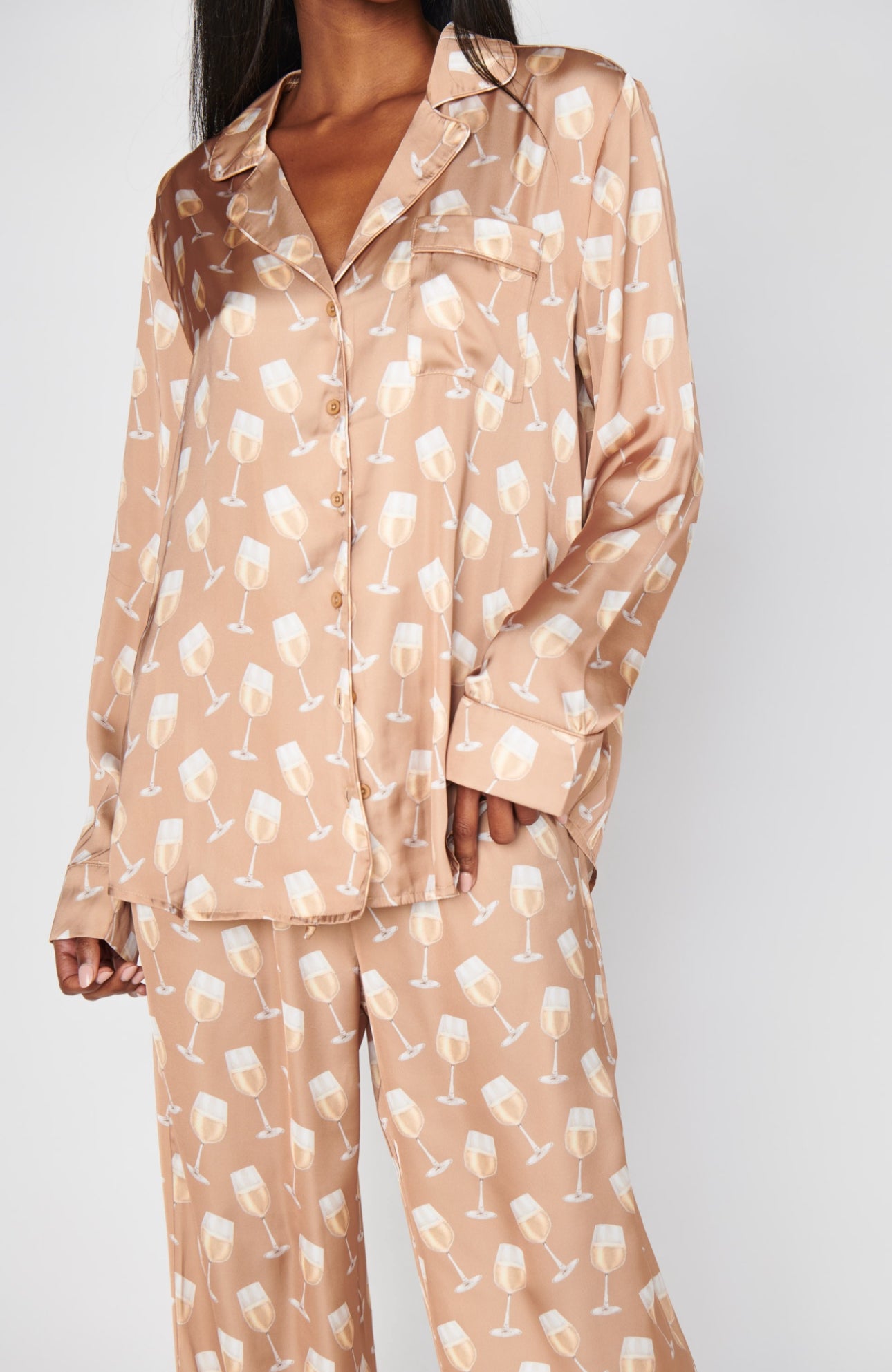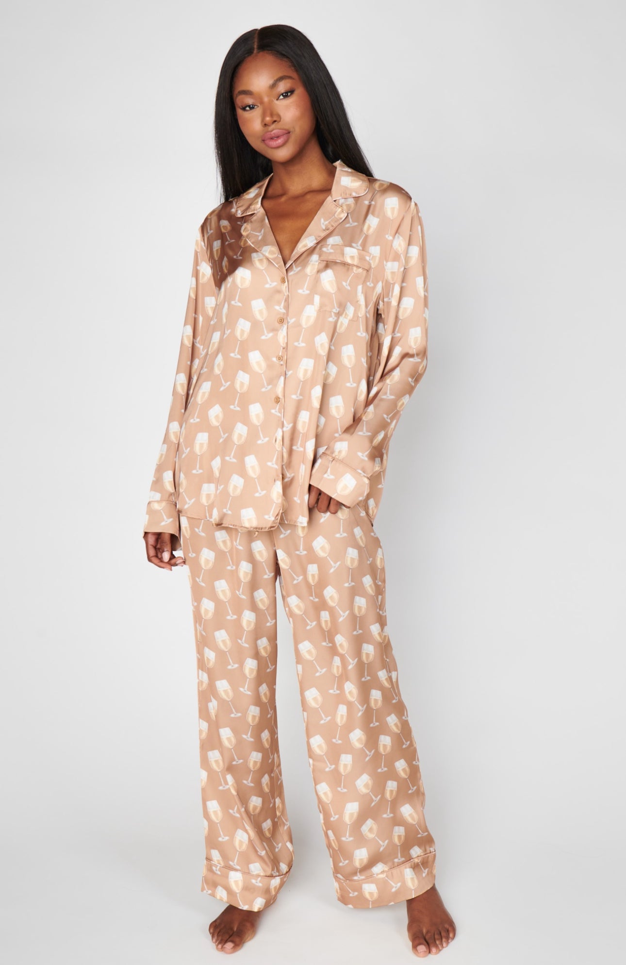 Show Me Your Mumu Classic PJ Set White Wine Silky