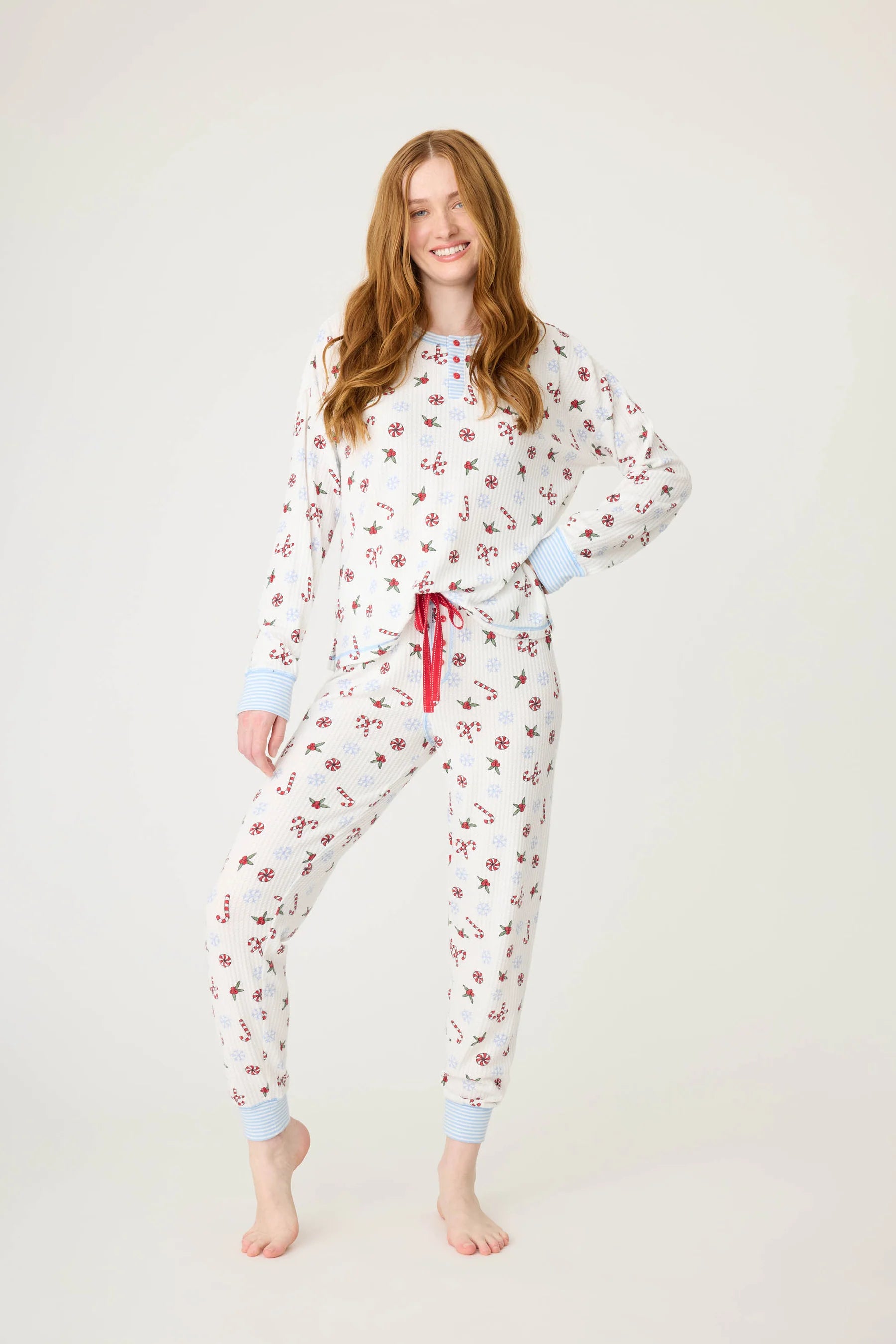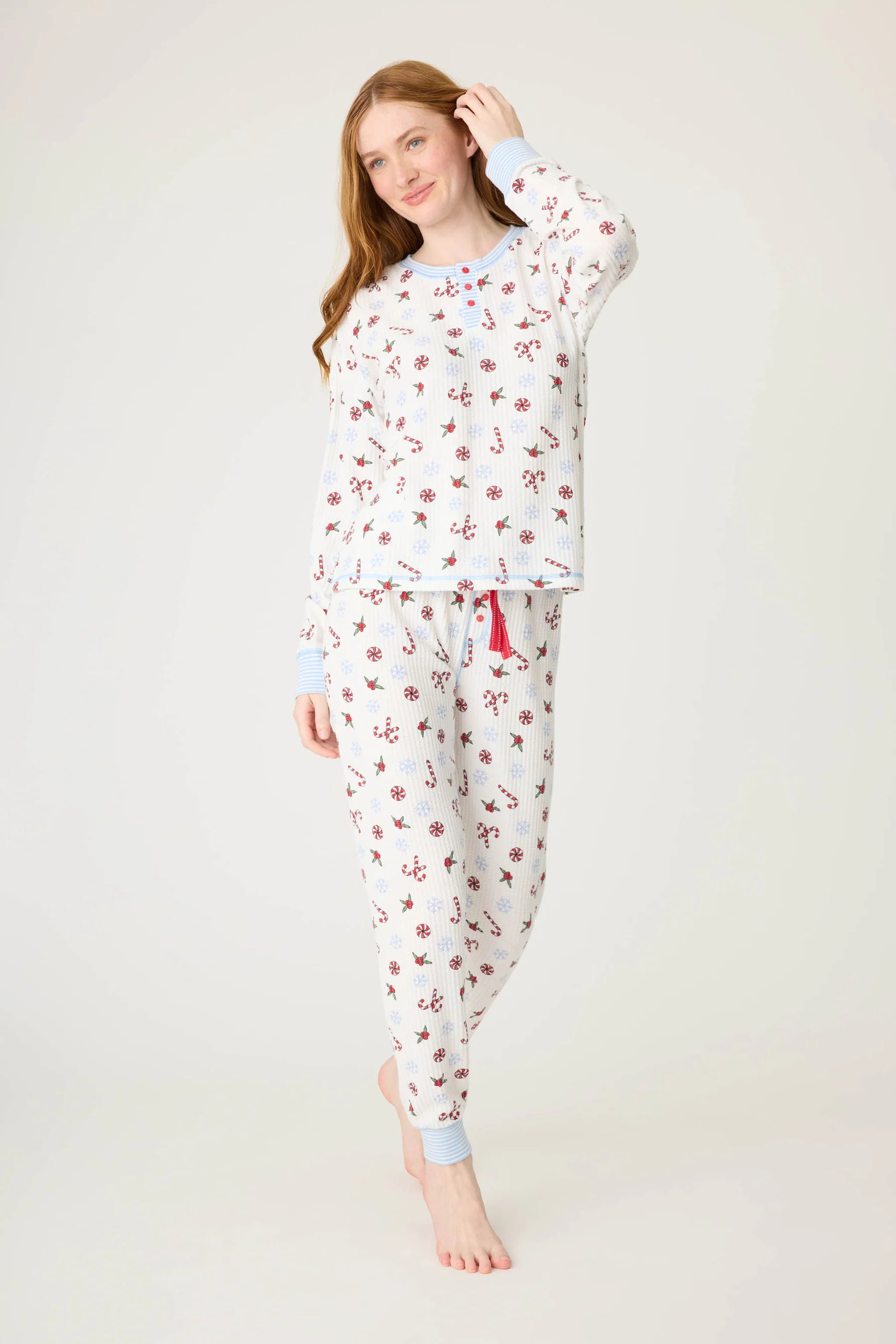 PJ Salvage Candy Cane Waffle Thermal Ski Jammie Set