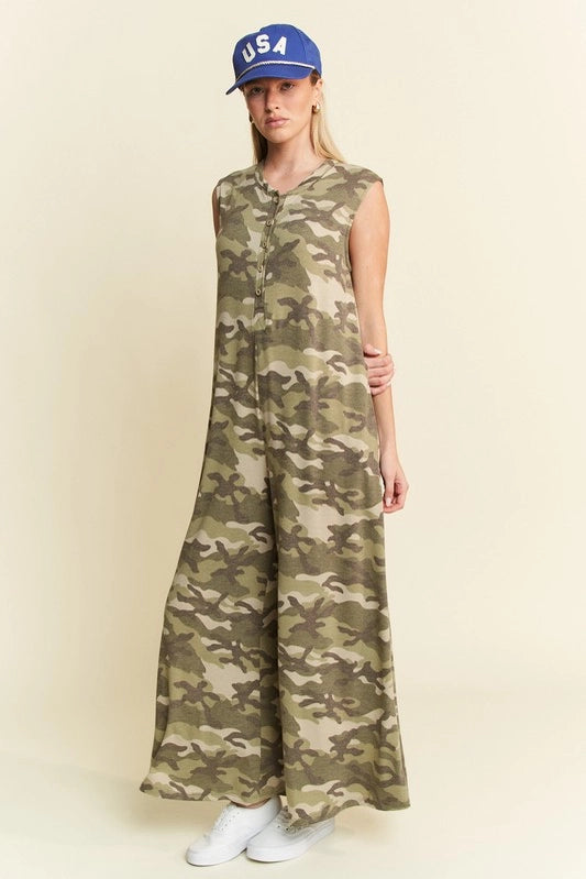 Jade by Jane Camo Print Wide Leg Jumpsuit