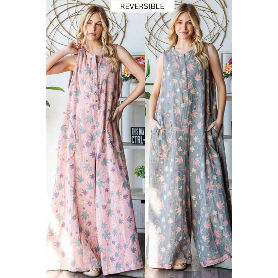 Oli & Hali Washed Sleeveless Printed Reversible Jumpsuit