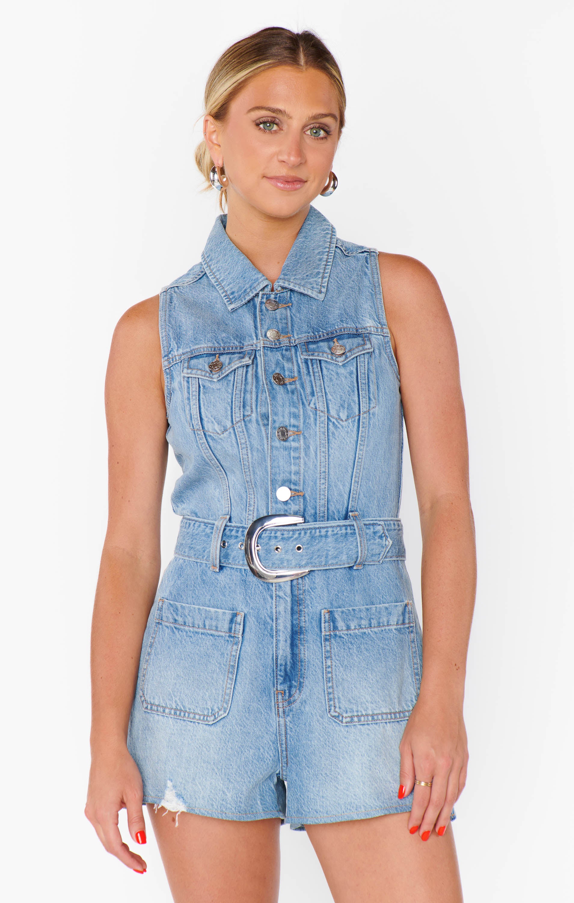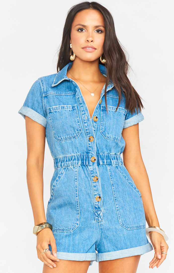 Show Me Your Mumu Range Romper Candy Pink Denim