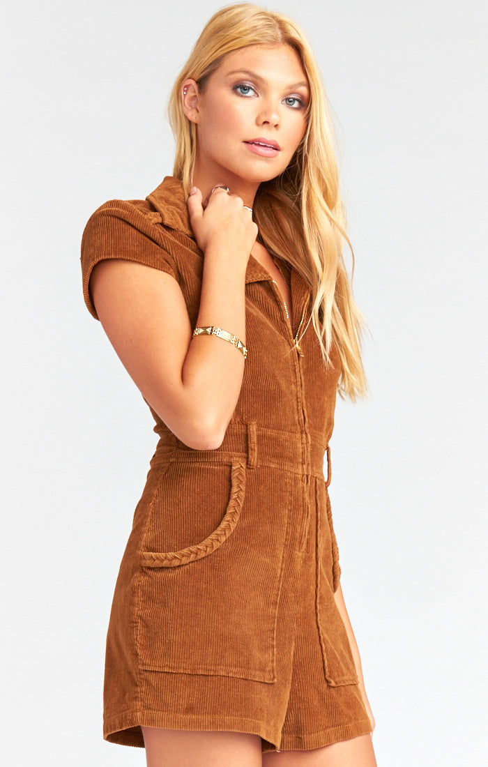 Show Me Your Mumu Outlaw Romper Saddle Brown Corduroy