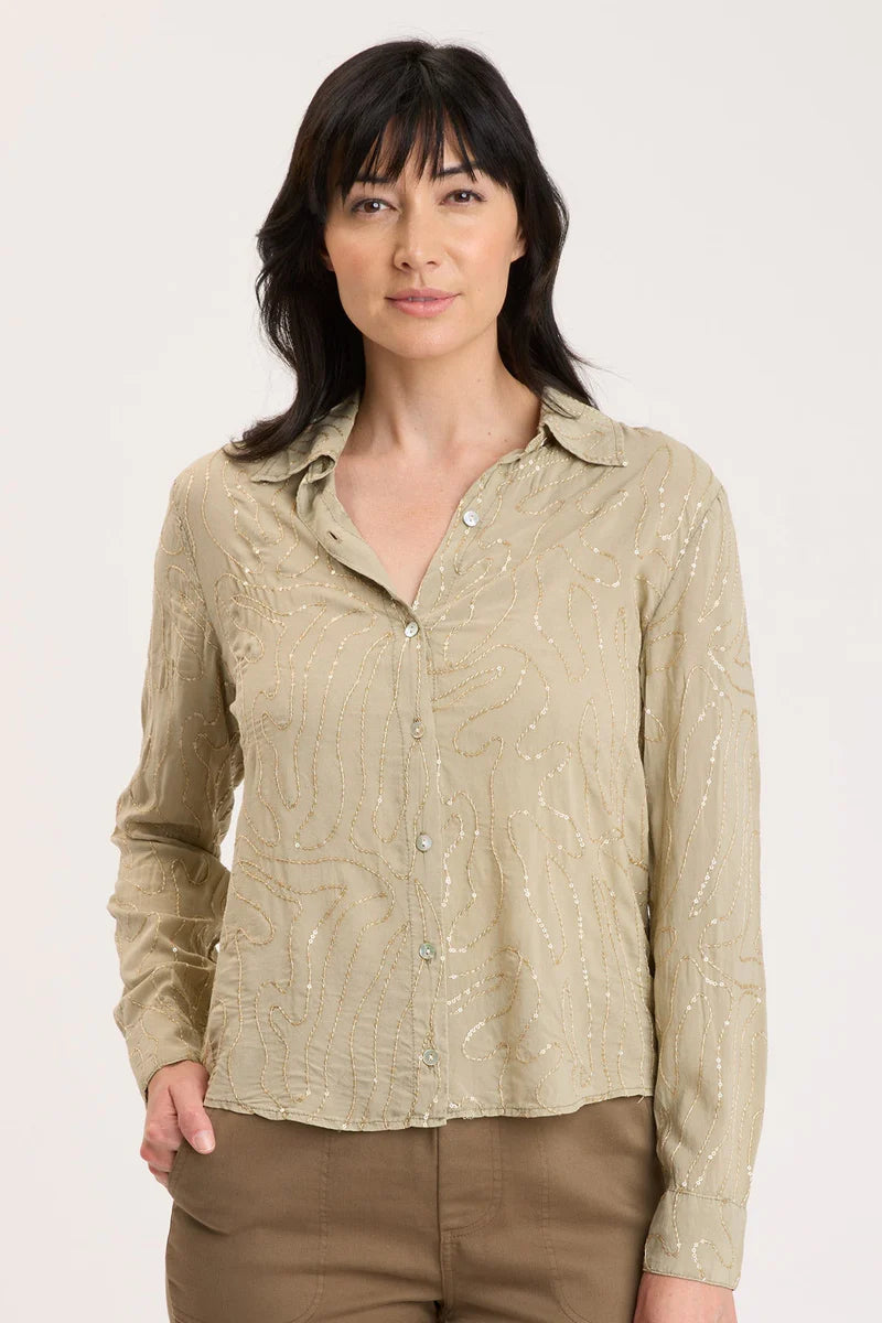 XCVI Seraphina Button-Up Sand Lime