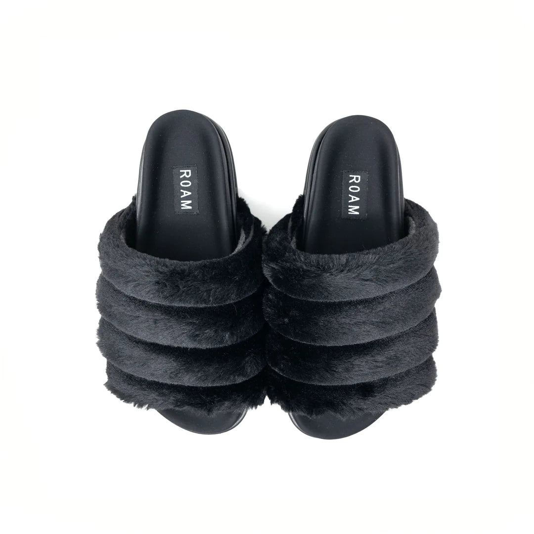 ROAM Cloud Black Slippers Faux Fur
