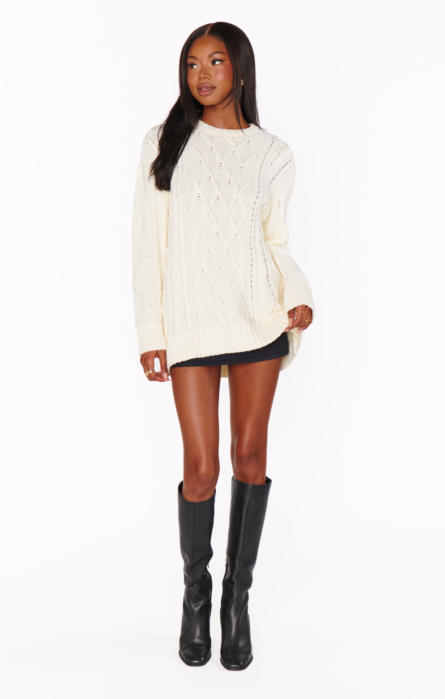 Show Me Your Mumu Day to Day Sweater Cream Cable Knit